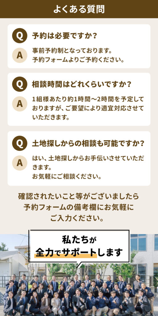 - 当日予約はご希望の2時間前までにご連絡をお願いいたします。なお、ご案内できるスタッフのスケジュールの都合上、ご希望の時間に添えない場合がございますのであらかじめご了承ください。